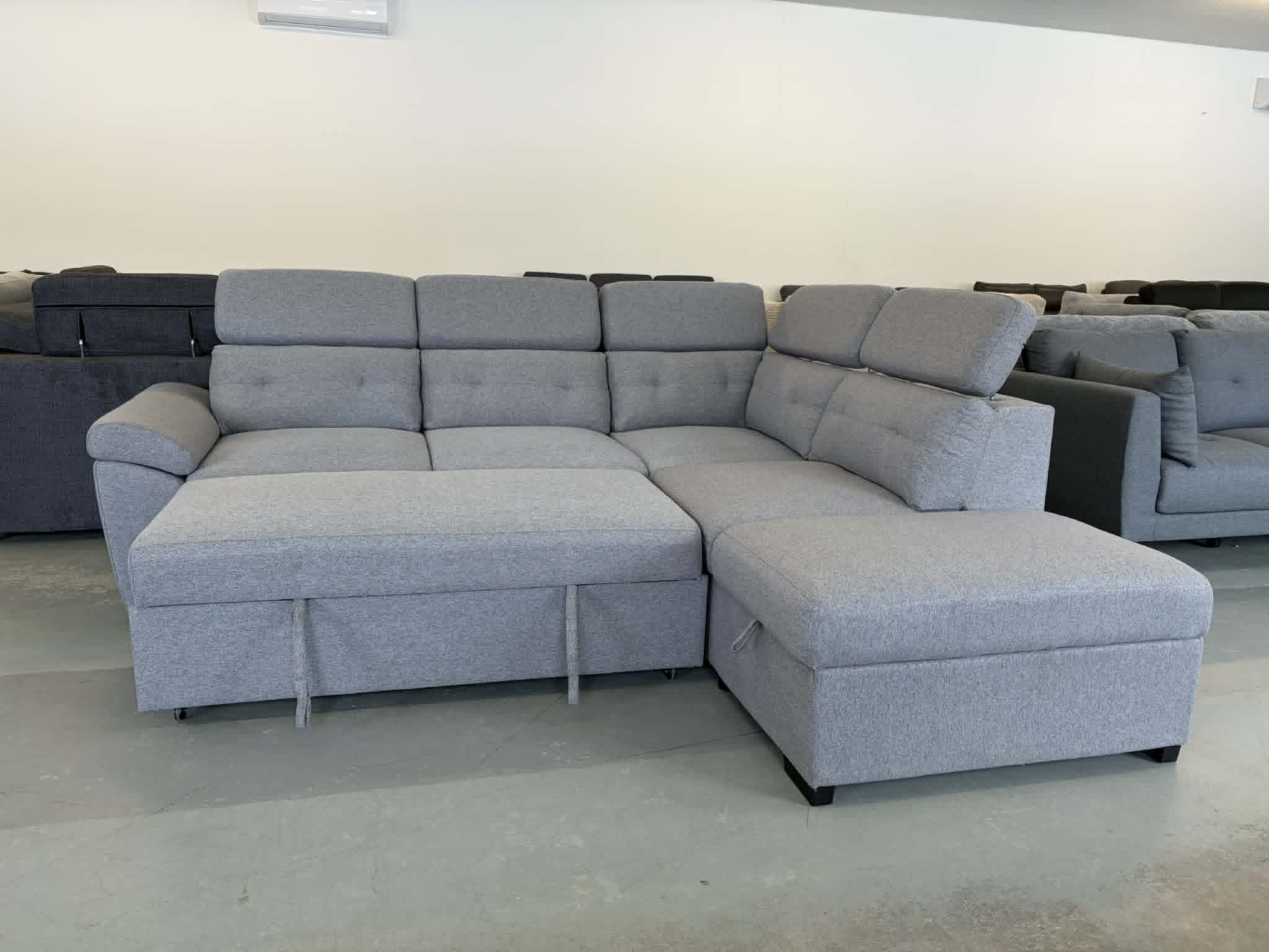 Sectionnel en tissu gris durable et facile d’entretien